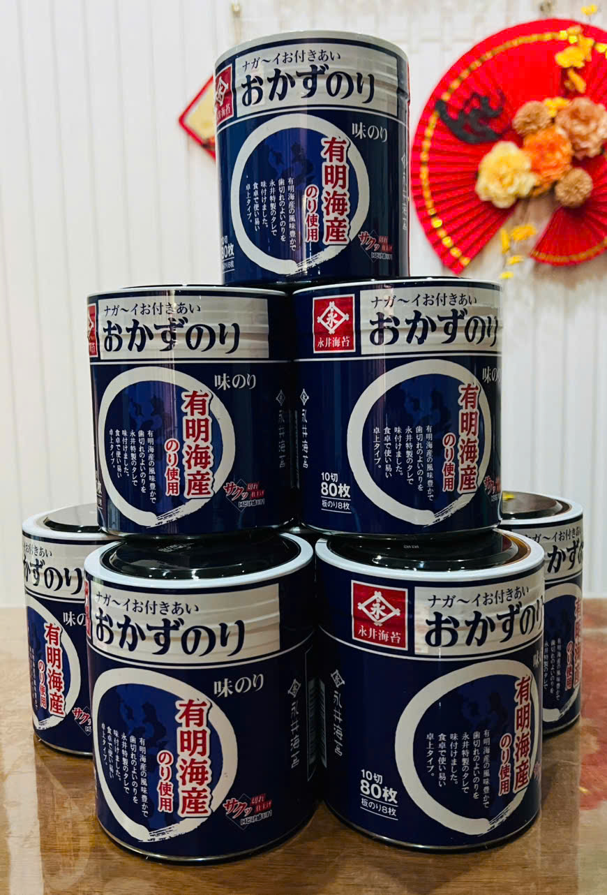 Chúng tôi tẩm gia vị loại rong biển giòn tan, đậm vị của vùng biển Ariake bằng nước sốt bí truyền của công ty Nagai. Đây là loại rong biển đóng hộp tiện lợi dùng trên bàn ăn.